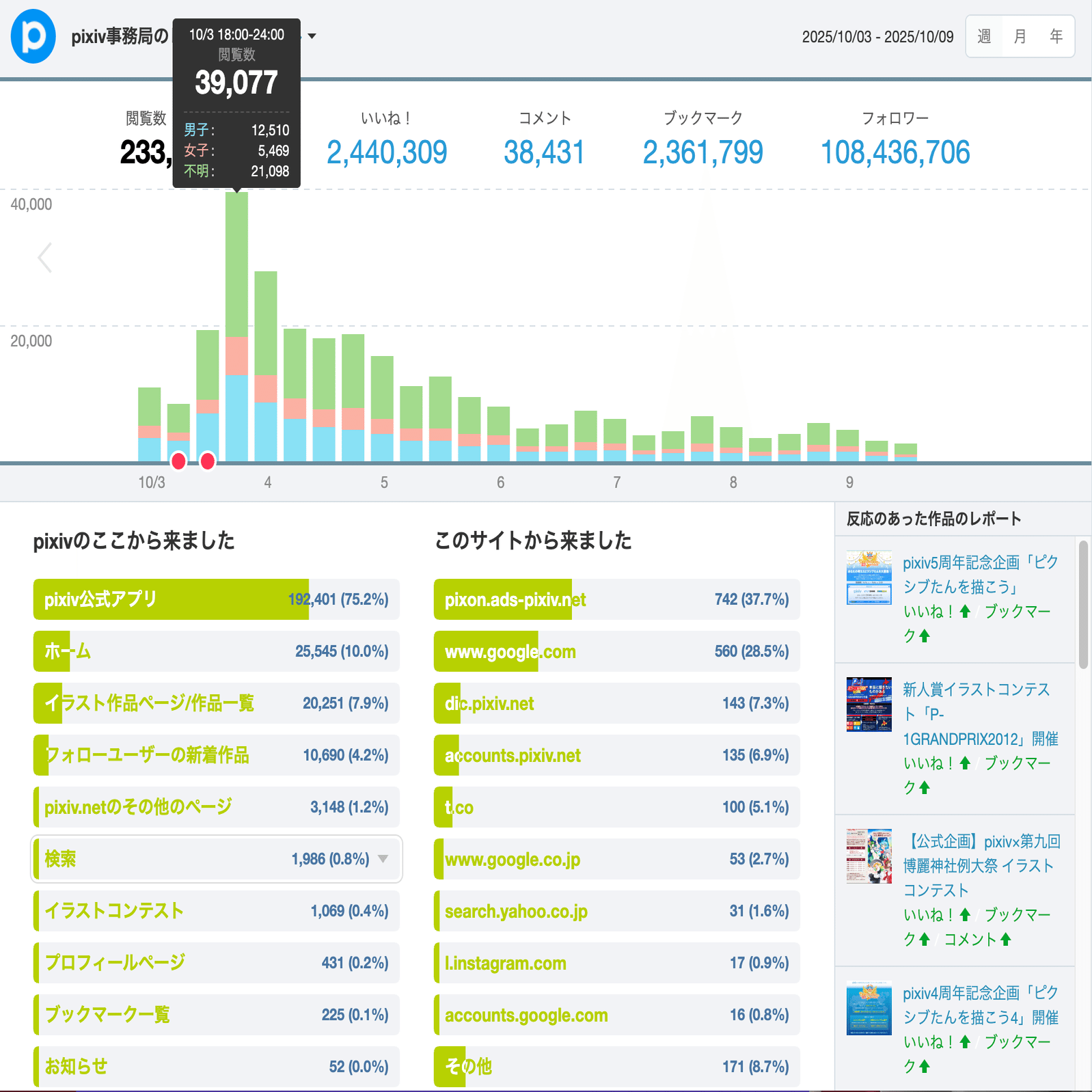 それにしても、pixivの数値……桁がまるで星のようです✨