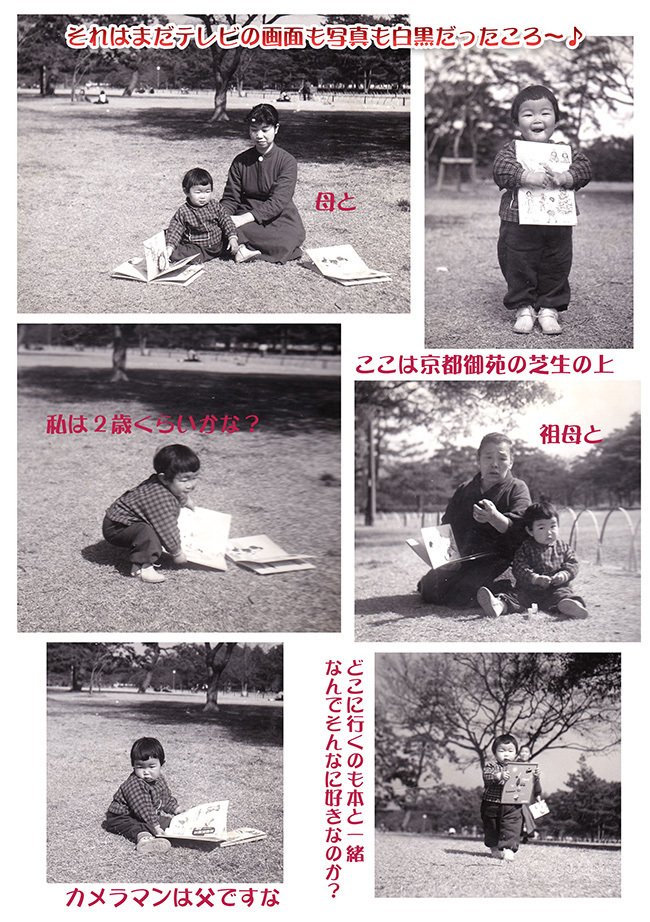 当時、動物園とか植物園とか、どこに行くにも本を抱えていたのが、父の撮った写真に残っています。どんなおもちゃよりも本が好きだったみたいです(^_^;)