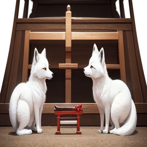 これは狛狐をやっているんだと思いますが、なんとも不思議な場所にいるおきつねさんたちです。あまり詳しいプロンプトを書かずにChatGPTさんにまかせてみたらこういうユニークな結果になりました(^_^;) 神社そのものでもありませんね。面白いです(^_^;)