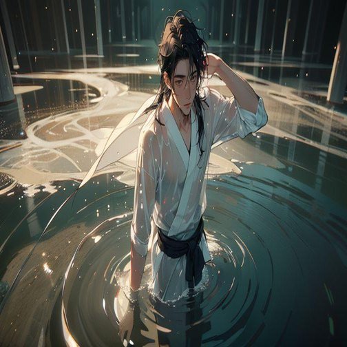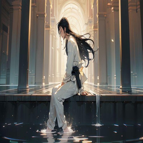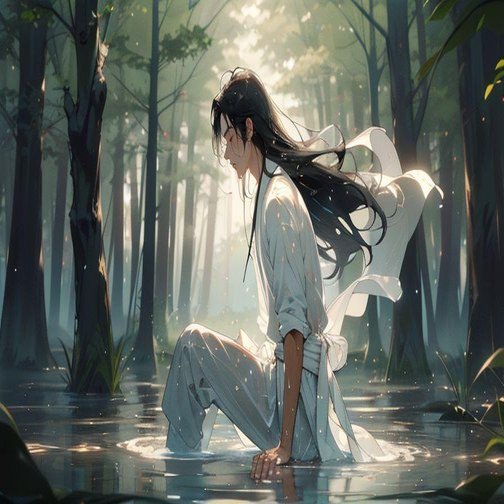 暑いので少し涼しげに水の精のイメージ? 森だけじゃなくて神殿のような背景もありますが。布の遊びは例によってSpellaiさん独自のものです(^_^;)