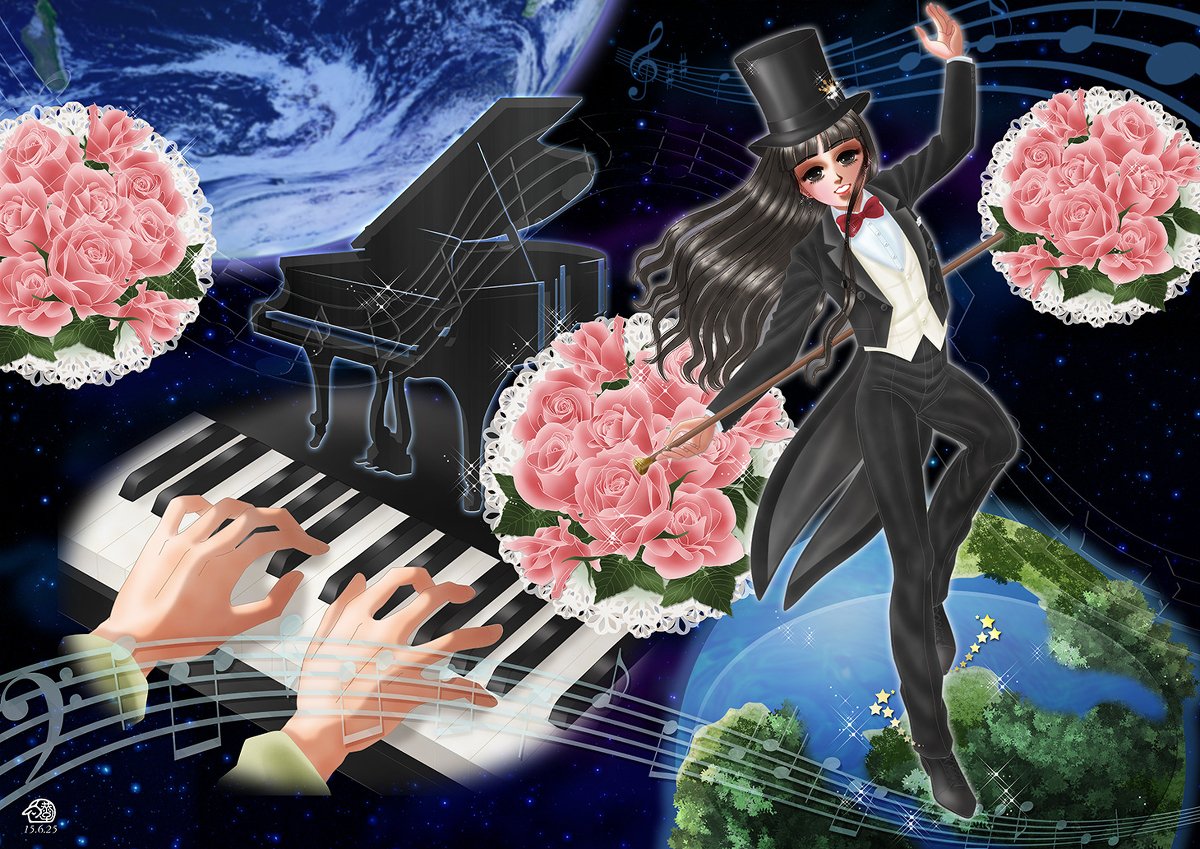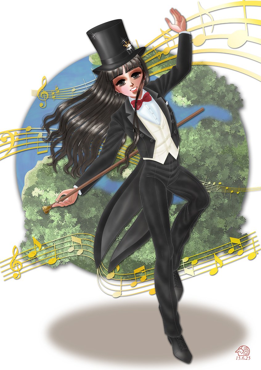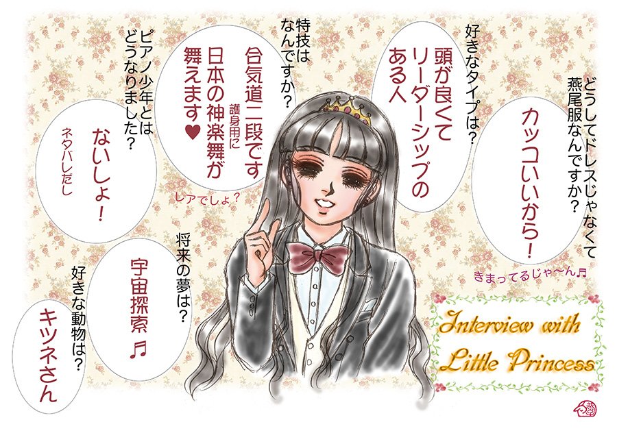 普段はほとんど描かない現代物。楽しかったです。しかもドレスじゃなくて燕尾服がいいというので、さらに楽しく描かせていただきました。姫なのに男装ですが、考えたら杏珠は普段からよく水干着てるし。