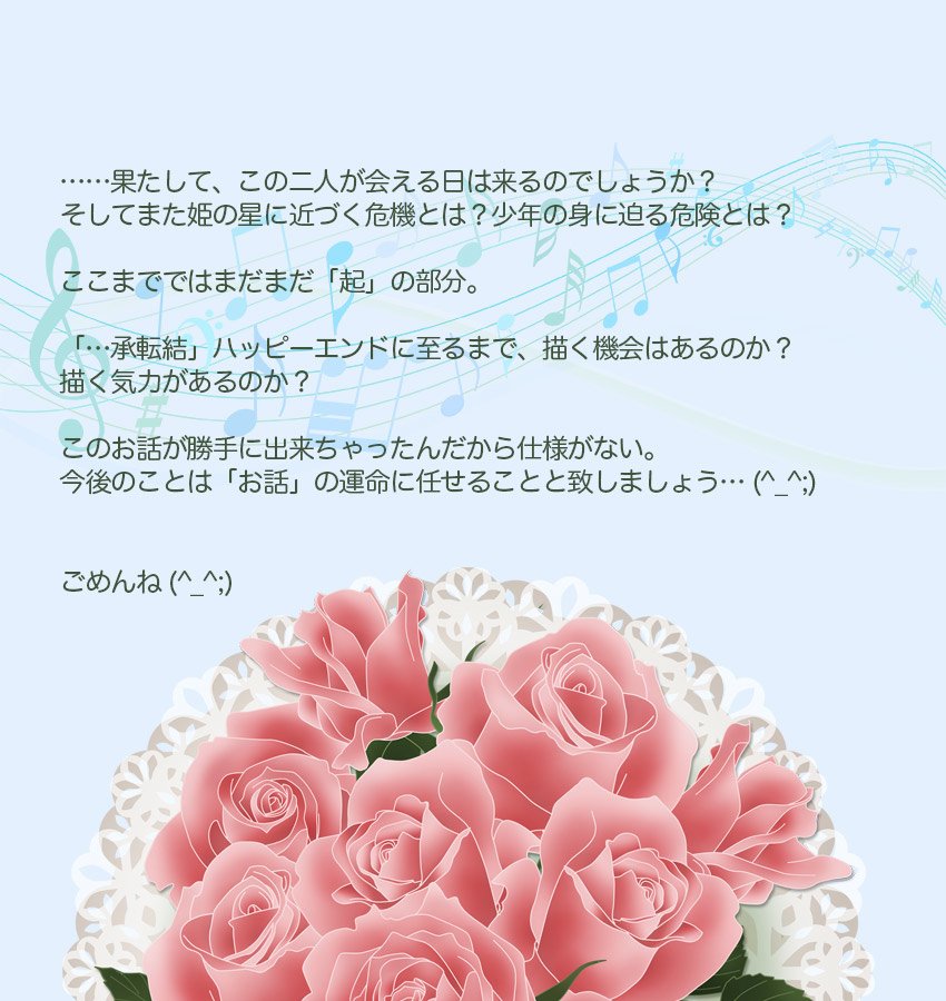 実はほぼラストまでの物語もあるんです。これの先を描くかどうかはわかりませんが、まあ成り行き次第ですね (^_^;) 現代のおとぎ話にはネットもドローンももろもろなんでもありなのです (^_^;)